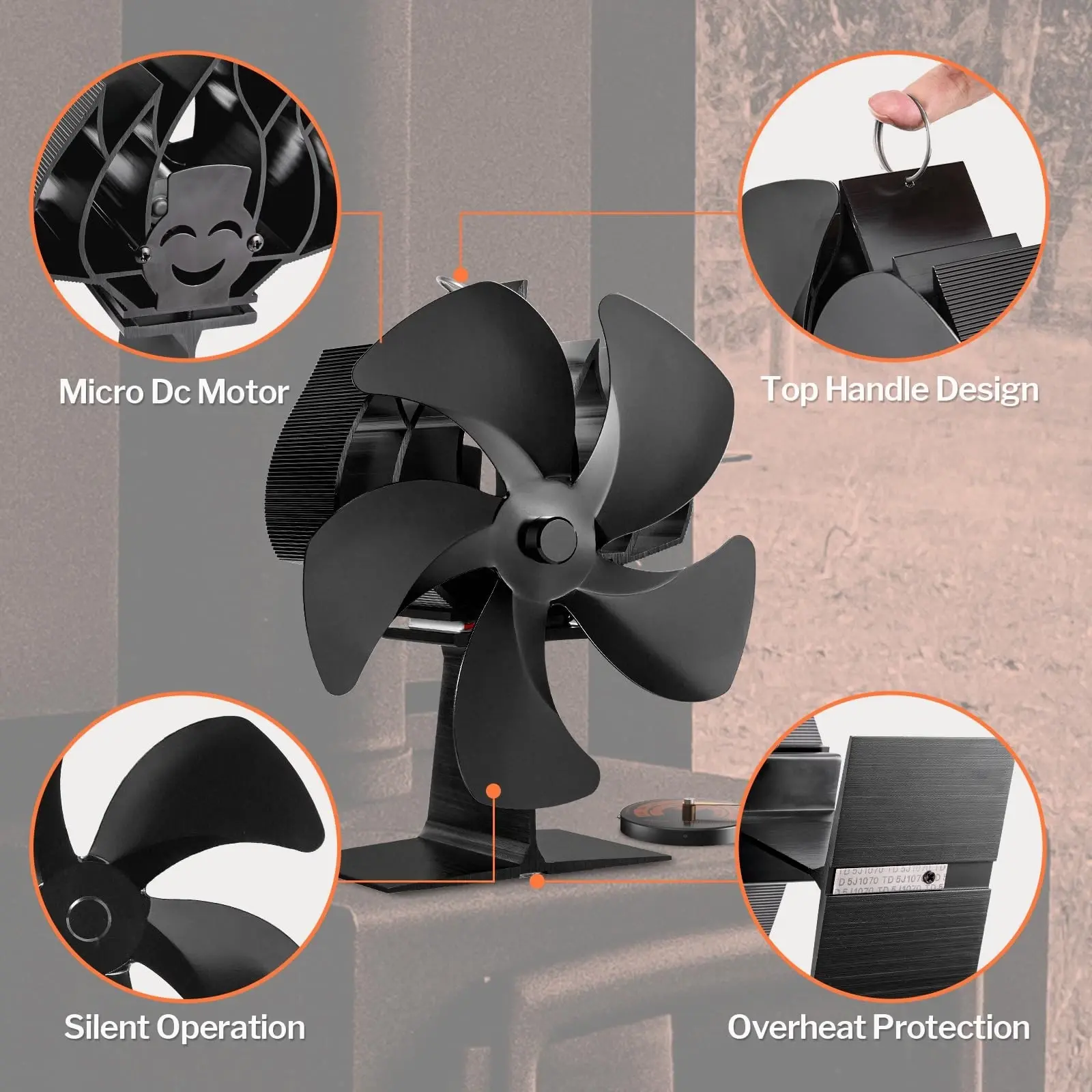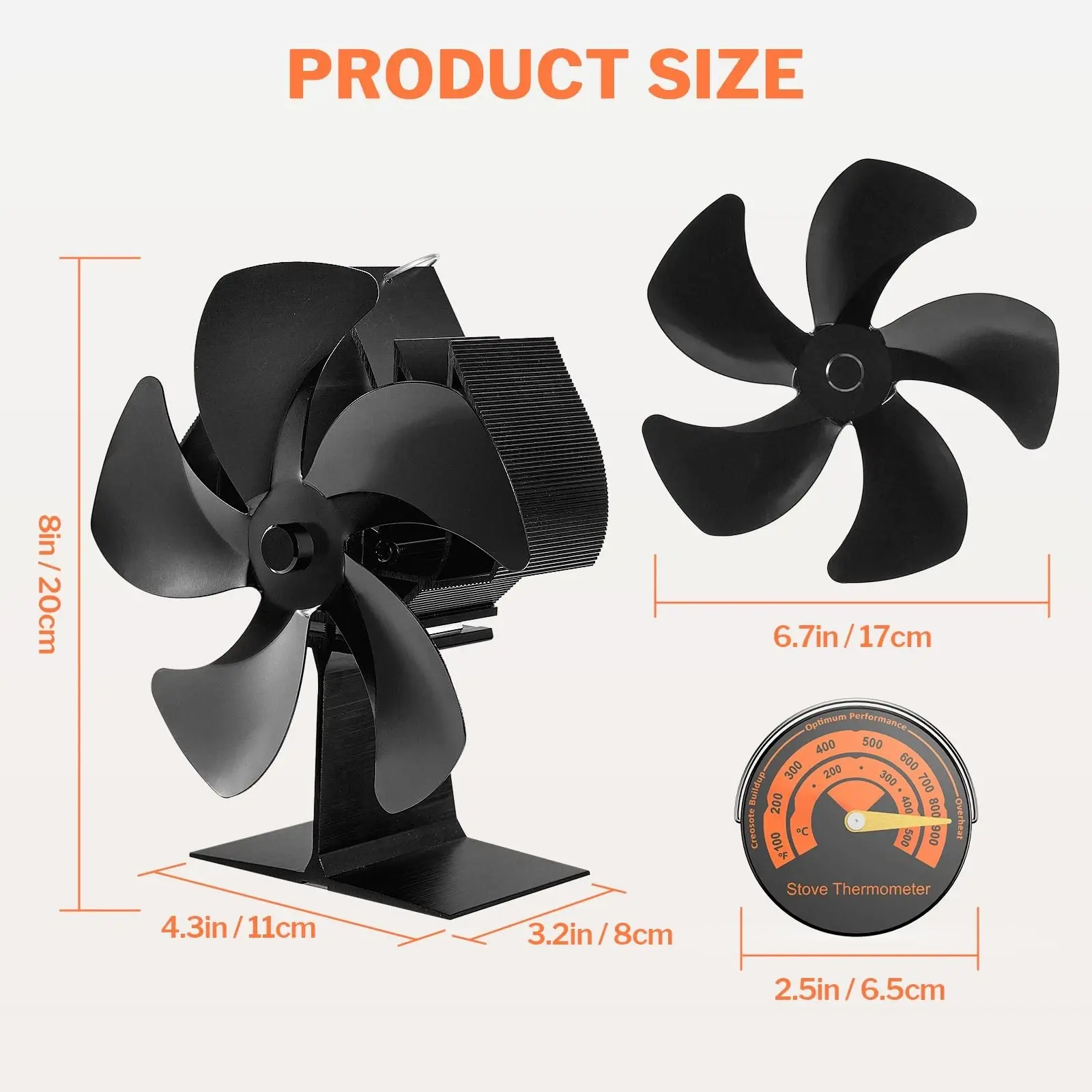 2 PCS Ventilateurs de Cheminée, 5 Lames Ventilateur de Poêle, 7 Pouces Brûleur à Bûches Ventilateur Feu Alimenté par Chaleur