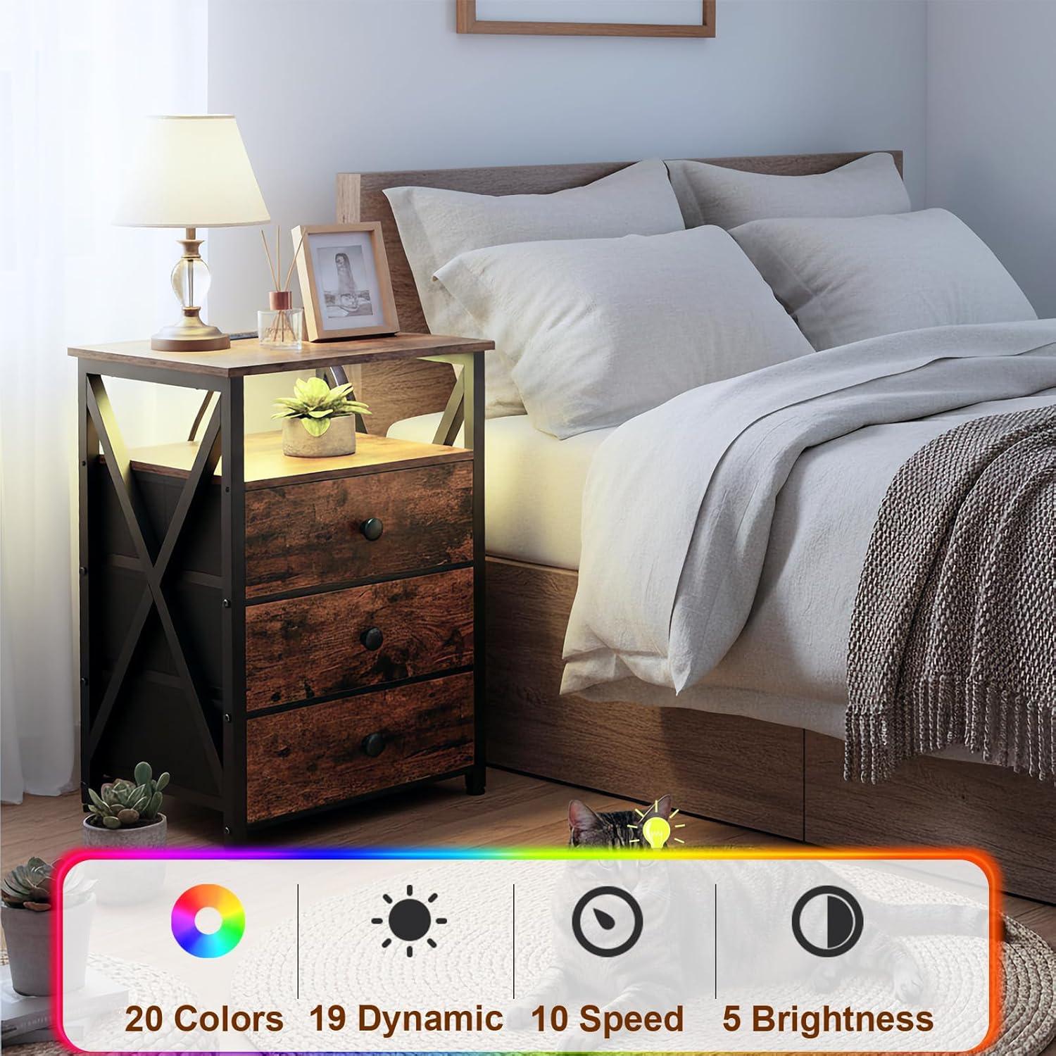 Spacious Nightstand Storage Cabinet: Measuring 15.75" D x 13.78" W x 23.62" H, this bedside table with charging station offers 5 distinct storage spaces. The top panel and open compartment are perfect for decorations, phones, while 3 closed fabric drawers provide ample space for less frequently used items. Ideal for bedroom; office; gaming room