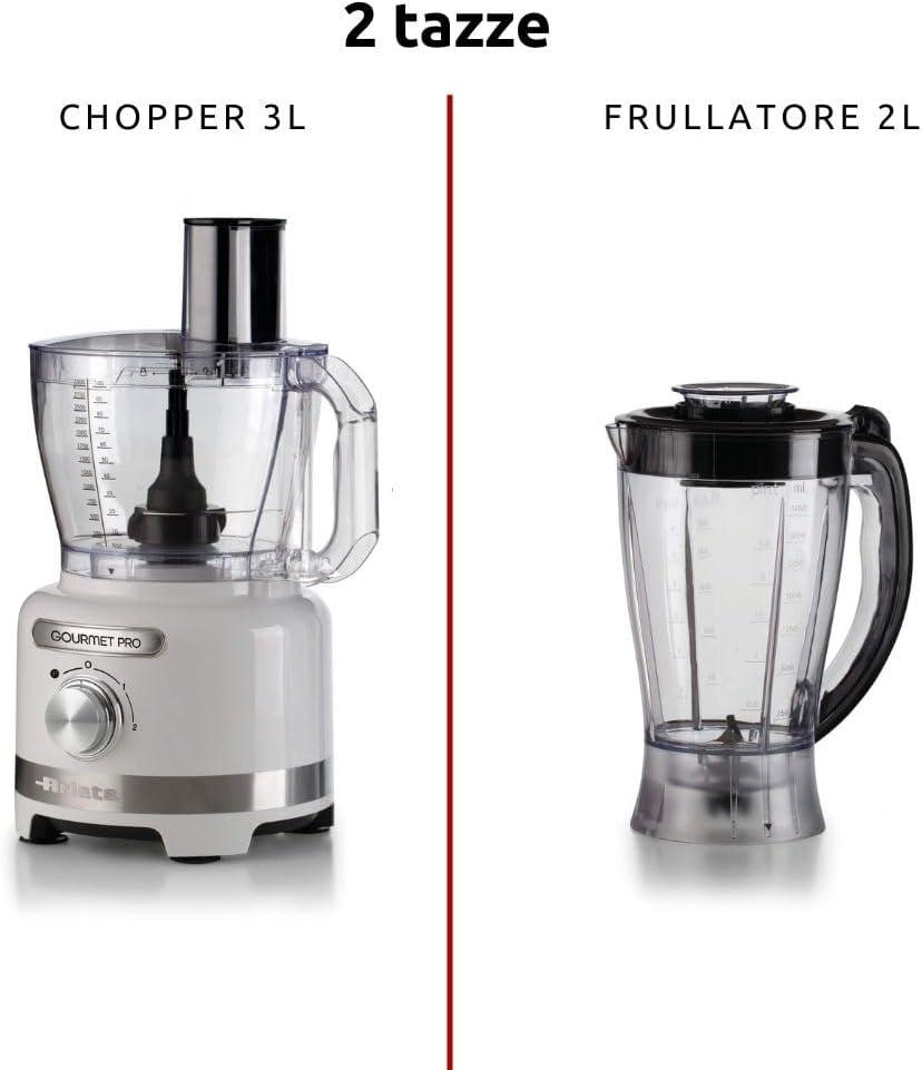 TWO CUPS ENDLESS POSSIBILITIES - The 3 litre tumbler is perfect for chopping vegetables, meat, dried fruits and cheese thanks to the different blades provided, the 2 litre blender is ideal for making smoothies, soups and sauces and chopping ice for your drinks