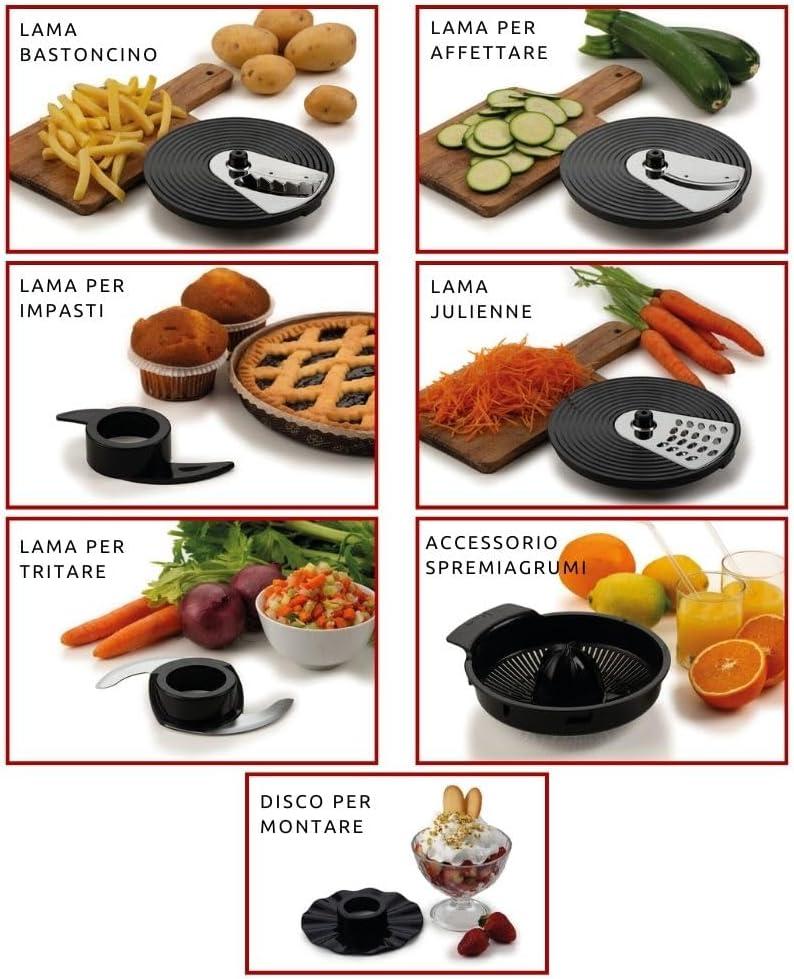 A set of blades for every need: designed for different functions such as chopping, kneading, cutting, mixing, grating;