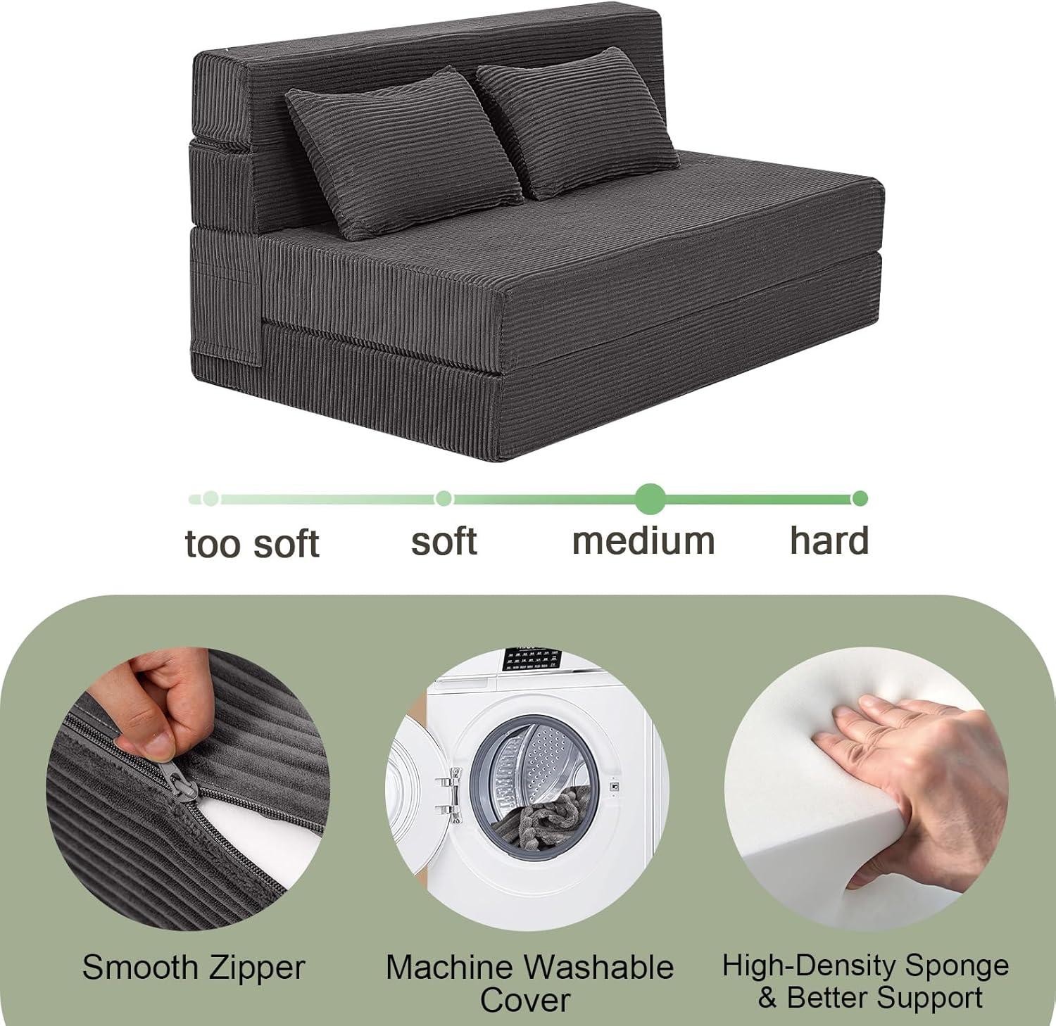 Folding Sofa Bed with Pillow: These pillows provide extra support while sitting or lounging. Whether you need a convertible chair bed to relax or a guest bed for overnight visitors, this foam couch bed is a comfy furniture for anytime and anywhere