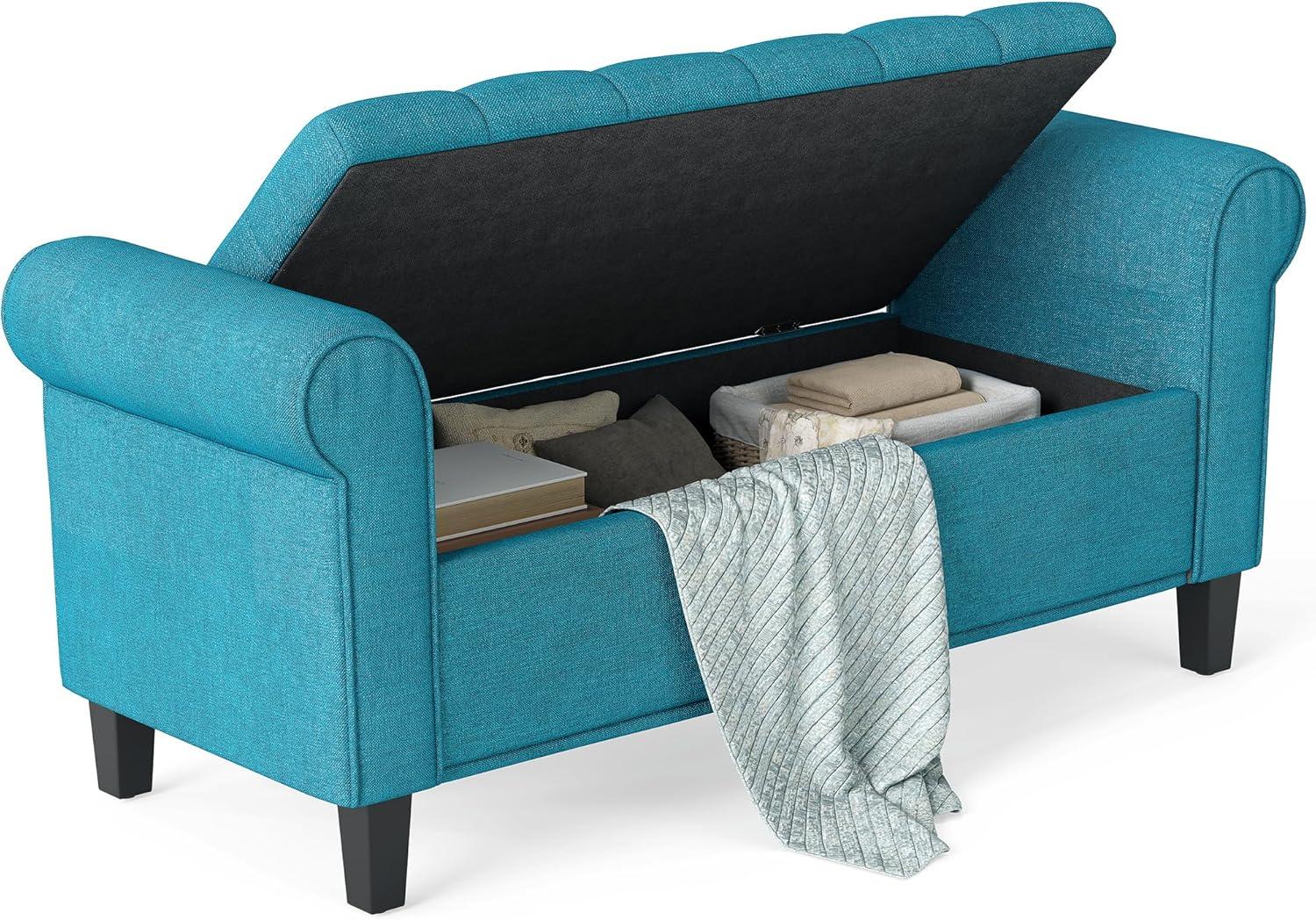 Hidden Storage: This cushioned bench has storage underneath the top lid, so you can hold blankets or pillows you want to put away.