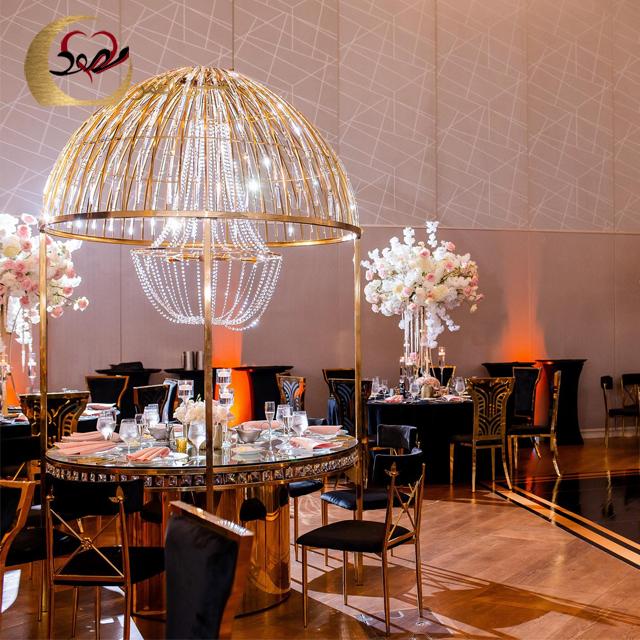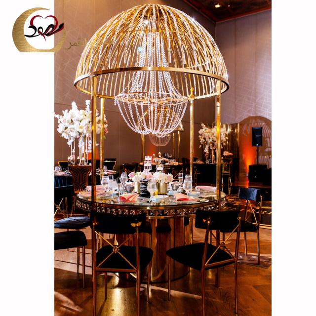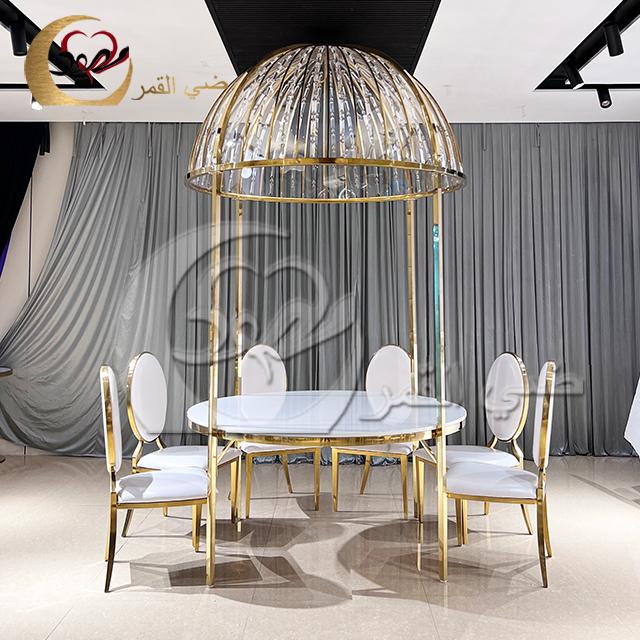 Luxury Wedding Furniture Crystal Top Stainless Steel Dining Table