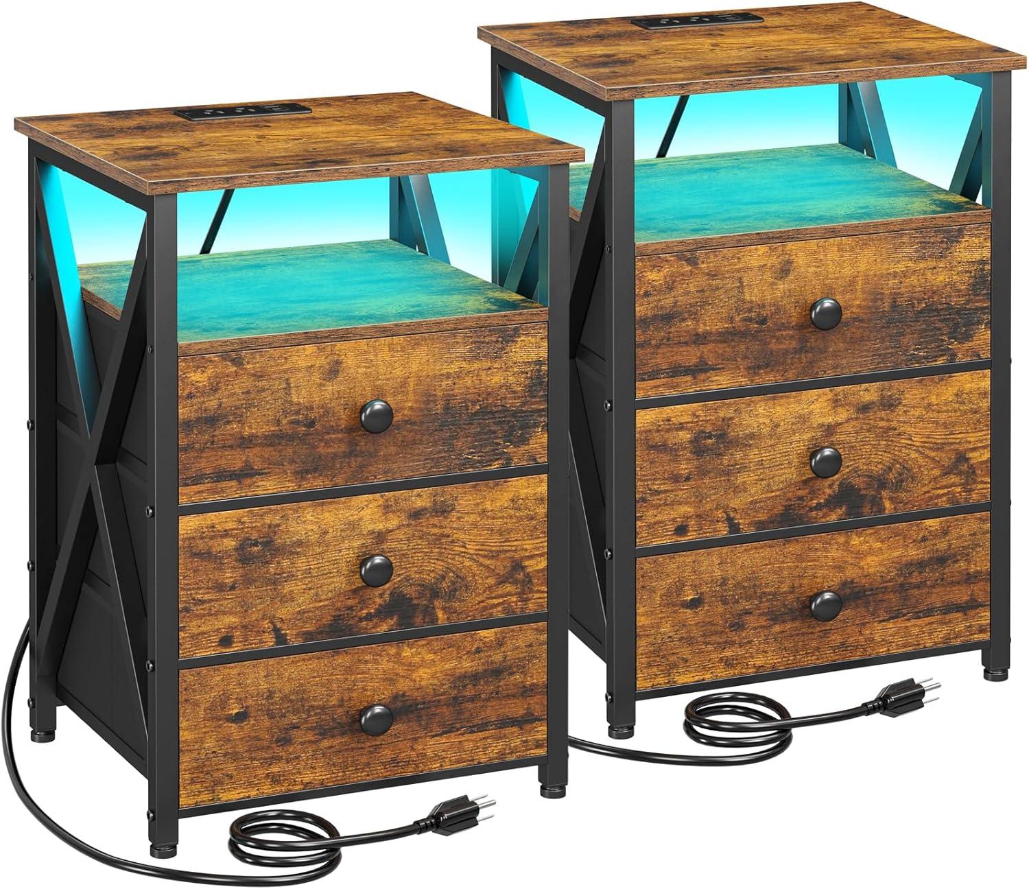 Spacious Nightstand Storage Cabinet: Measuring 15.75" D x 13.78" W x 23.62" H, this bedside table with charging station offers 5 distinct storage spaces. The top panel and open compartment are perfect for decorations, phones, while 3 closed fabric drawers provide ample space for less frequently used items. Ideal for bedroom; office; gaming room