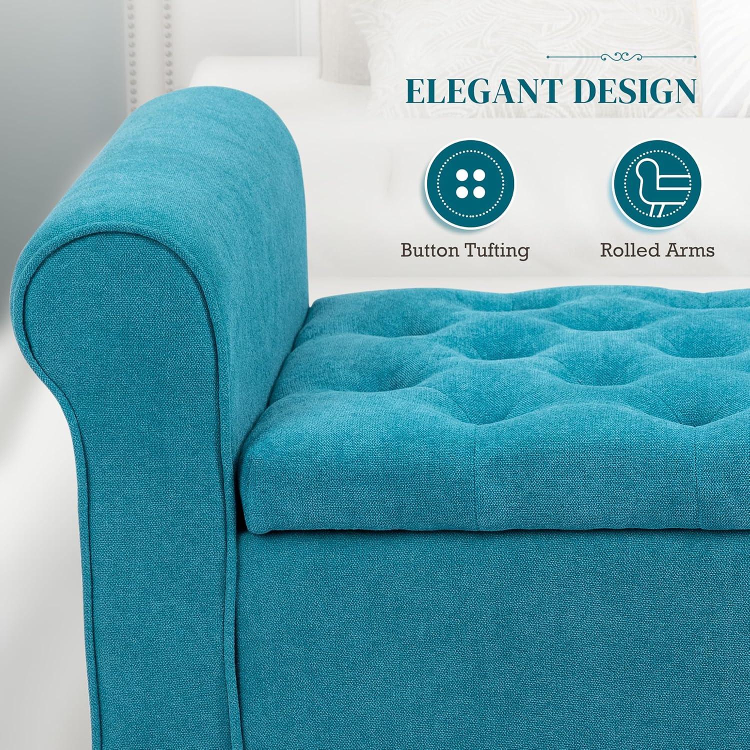 Hidden Storage: This cushioned bench has storage underneath the top lid, so you can hold blankets or pillows you want to put away.